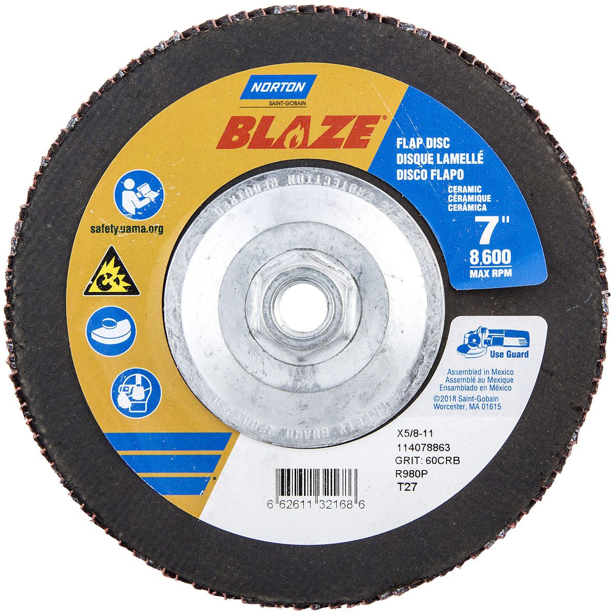 Norton® Blaze 7" X 5/8" - 11 60 Grit Type 27 Flap Disc