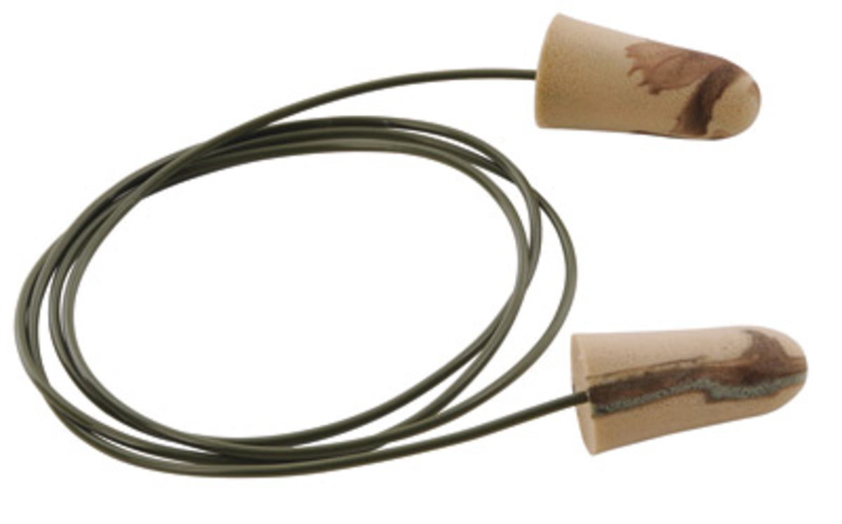 Moldex® Camo Plugs® Corded Foam Earplugs feature a tapered shape that fits conveniently in the ear canals and seals softly and snugly. Earplugs have a non-irritating smooth surface and gives good hearing protection. The noise reduction is rated at 33 dB.