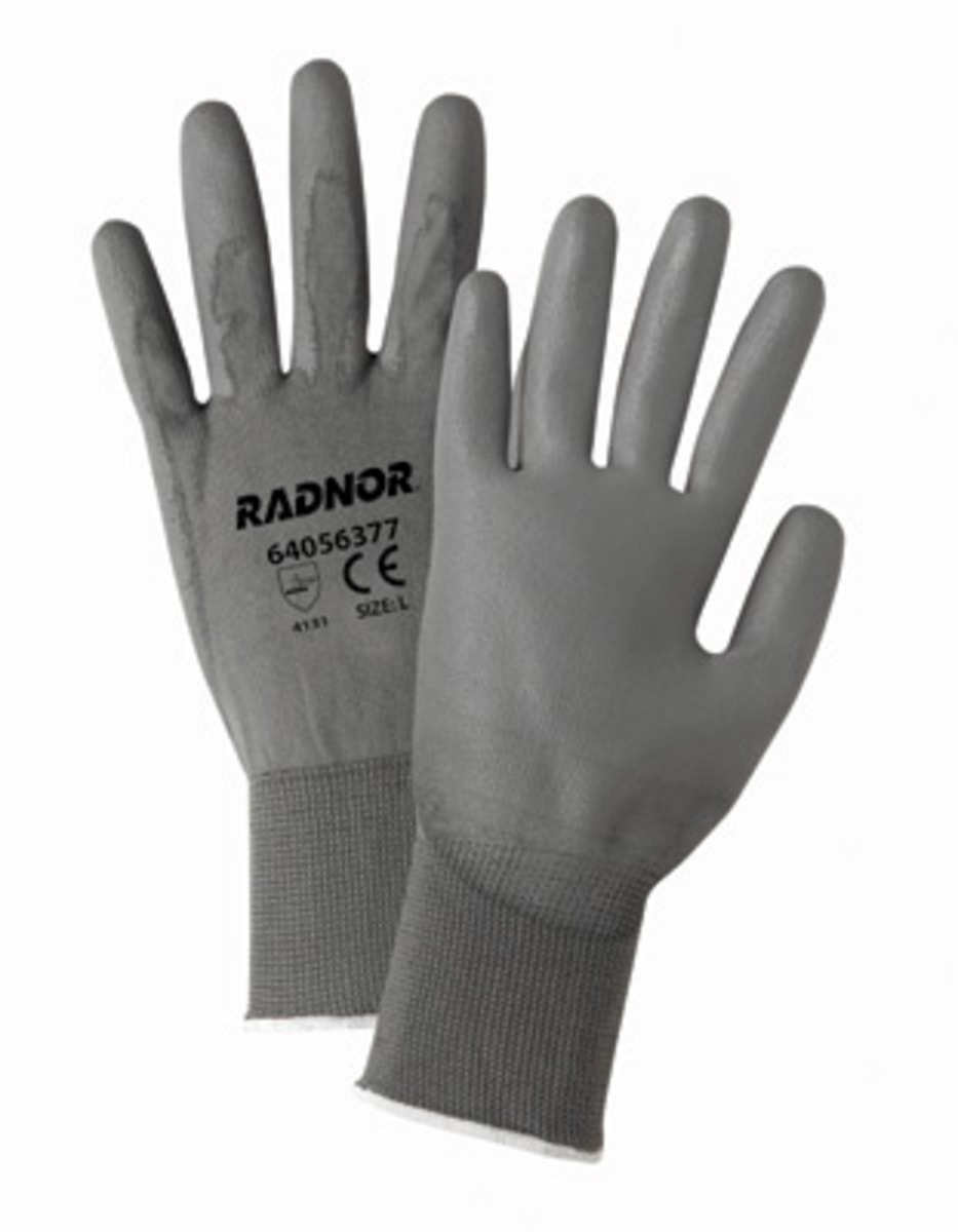 RADNOR Economy Polyurethane Palm Coated Gloves are based on a seamless 13 gauge nylon knit liner for outstanding tactility and dexterity to reduce hand fatigue.