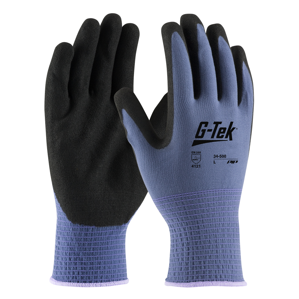Protective Industrial Products Medium G-Tek® 13 Gauge Black Nitrile Palm And Finger Coated Work Gloves With Blue Nylon Liner And Knit Wrist