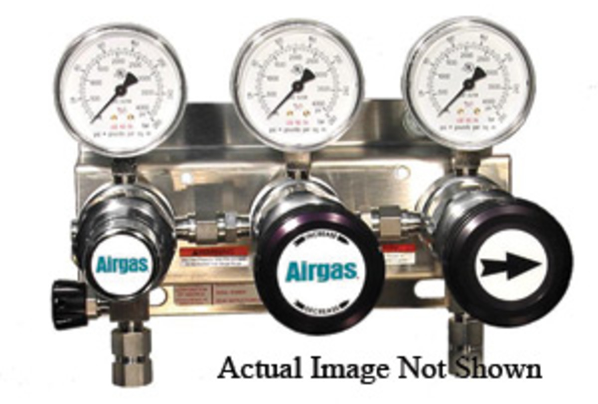 These high-pressure changeover manifolds are designed for high delivery pressures and to supply a continuous supply high pressure, high-purity, non-corrosive, non-oxidizing gas, from either a 3000, 4500, or 6000 psig pressure source. Due to the pressure differential considerations, an integral line regulator is used to maintain a constant downstream pressure that is available in four delivery pressure ranges. The pigtails are flexible stainless steel for easy cylinder connection