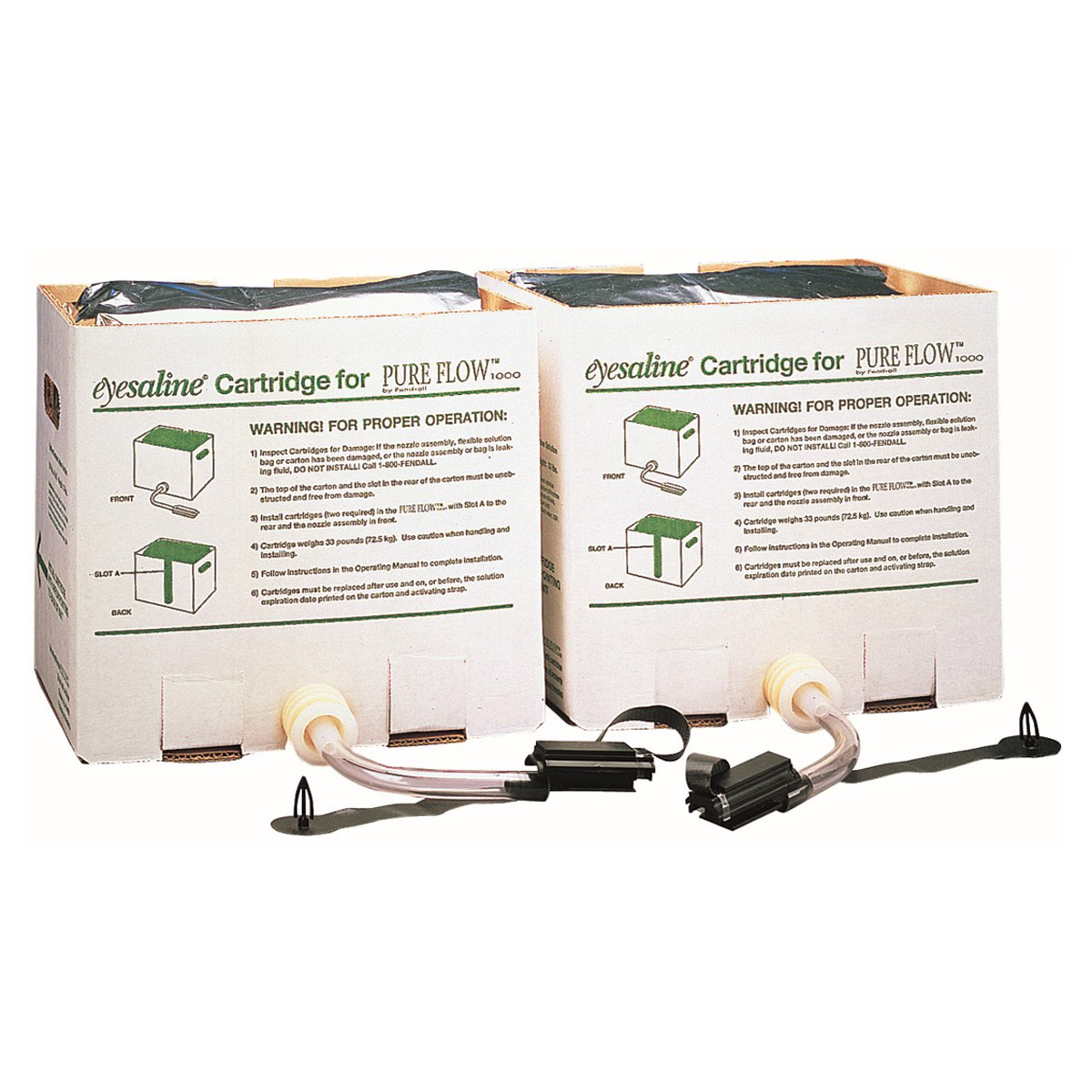 - Fend-all Tri-lingual Saline Refill Cartridge ideal for Pure Flow 1000 eyewash station helps to eradicate mixing, measuring and the opportunity for airborne particles or microorganisms to pollute the fluid prior to use. Cartridge replacement and cartridges remain sealed until it gets activated. Expiration date is included on activation straps where the expiry date is 24 months of life from date of manufacture.