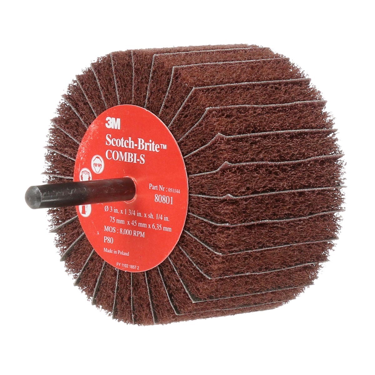 Scotch-Brite™ Combi-S Wheel 80801, 3 in x 1-3/4 in 1/4 in Shank 80 X-weight, 10 ea/Case