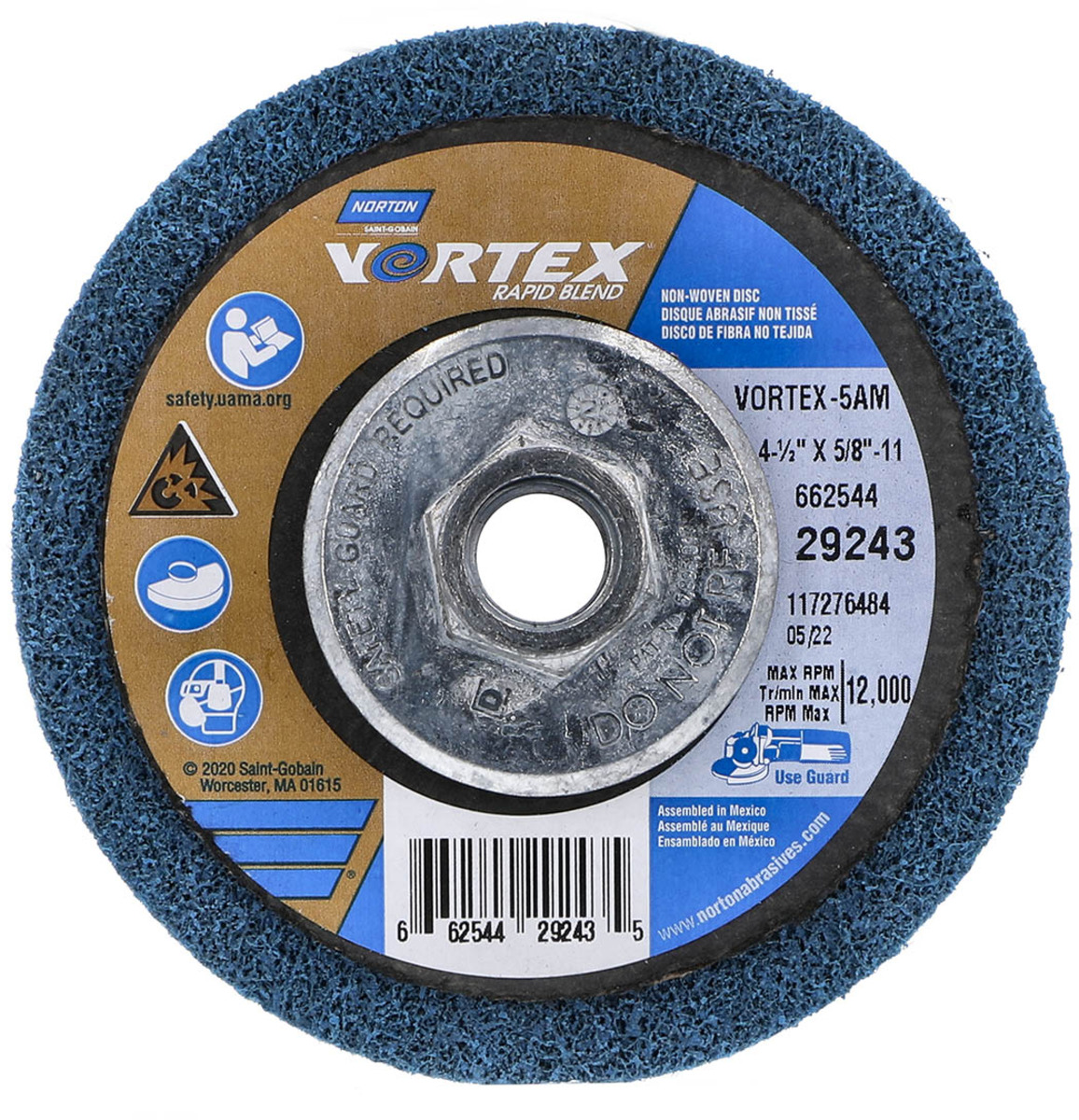 - Take care of deburring, blending, surface prep and parting line removal with this Bear-Tex Vortex Rapid Blend aluminum oxide medium grit non-woven depressed center disc