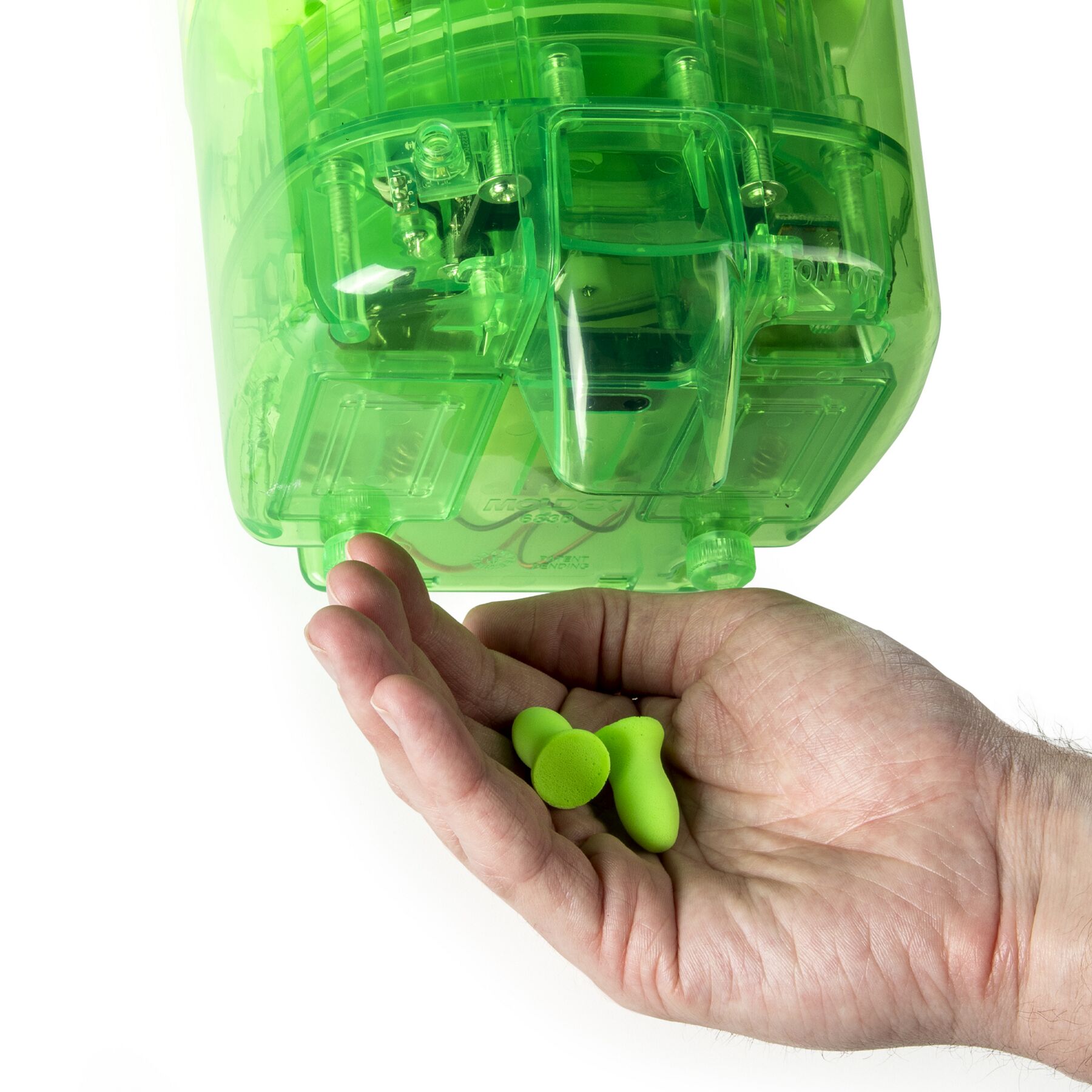 - Built in sensor recognizes when a hand is underneath and dispenses a pair of earplugs