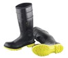- Dunlop Black Size 10 Men's Polyblend Boots with Ultragrip outsole offer great underfoot protection and remarkable puncture resistance. They feature 16" steel toes and have a molded seamless construction. The pull-up and kick-off lugs facilitate easy on and off and the height can be adjusted with the help of cut off band. The cushion insoles can be replaced and are used in orchards, vegetable fields, citrus groves and agriculture. The steel toes conform to the ASTM F2413-05 standards.