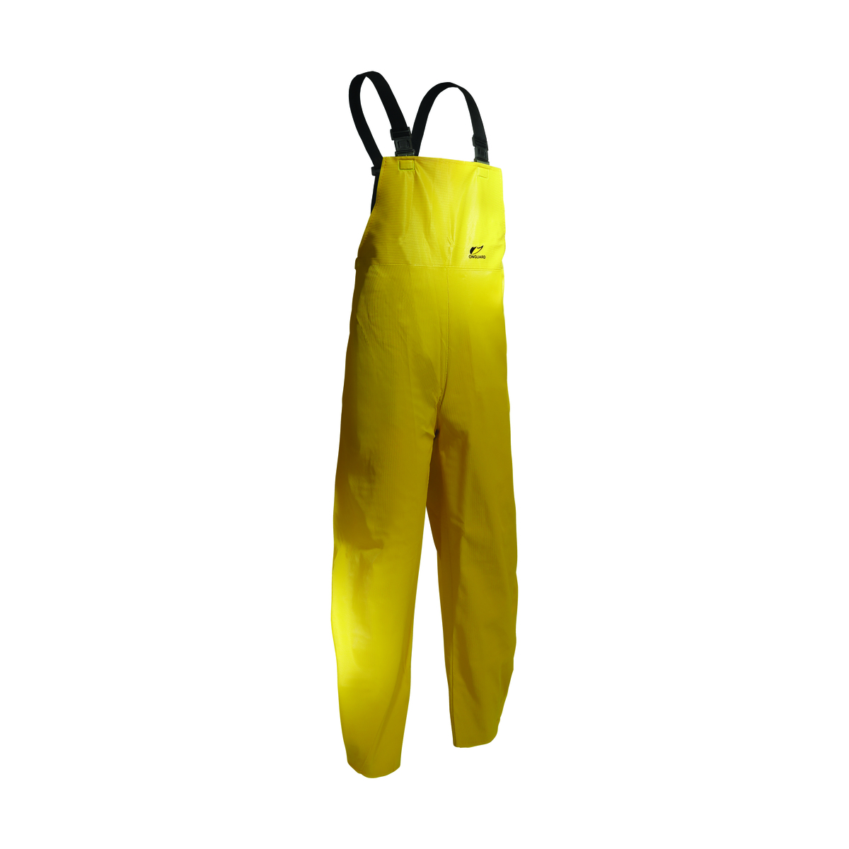 - Onguard Webtex Small Yellow 48 1/2" Bib Overall with plain front having no fly closure features 0.65 mm ribbed PVC on non-woven polyester construction to render high abrasion resistance. Overall incorporates ankle and cuff take-up snaps for a comfortable as well as tapered fit while reinforced crotch area avoids splitting. Overall with heavy-duty adjustable suspender consists two front snap pockets on jacket and waist snap which is adjustable offers perfect fit while underarm vents keeps user cool.