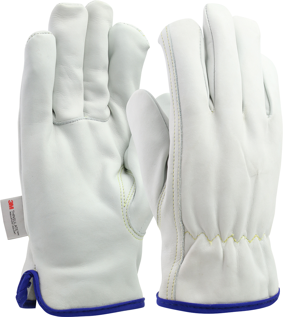 RADNOR Thinsulate lined grain cowhide drivers gloves keep your hands warm and dry. Color coded hem for easy identification these gloves have a keystone thumb and elastic back for a better fit.