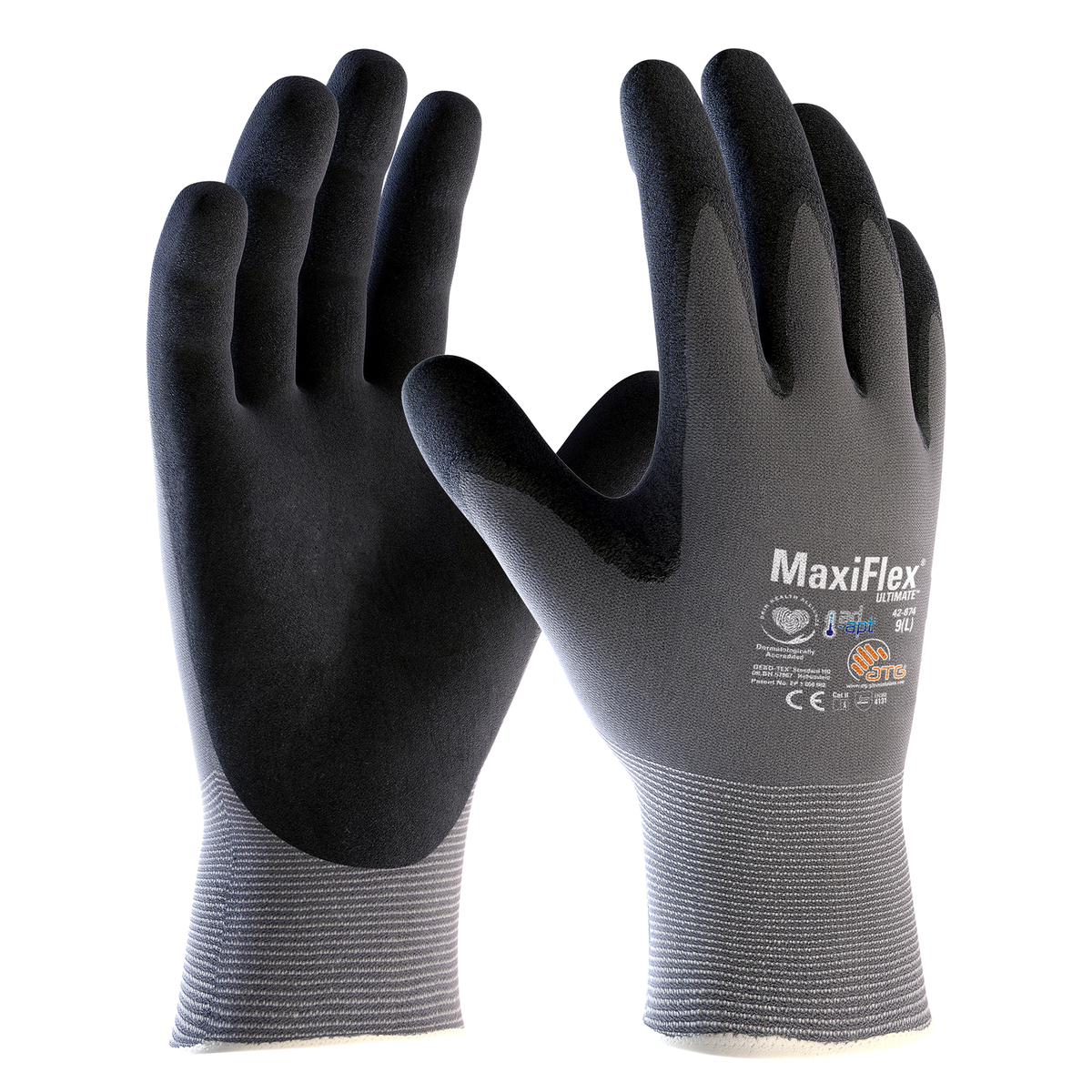 Protective Industrial Products MaxiFlex® Ultimate™ AD-APT™ 15 Gauge Black Microfoam Nitrile Palm And Finger Coated Work Gloves With Nylon/Elastane Liner And Knit Wrist