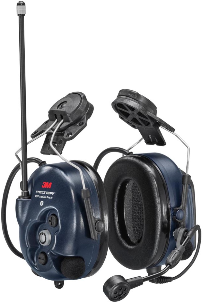 3M PELTOR WSLiteCom PRO III Dark Blue Hard Hat Attached Digital Radio Earmuffs With Rechargeable Liion Pack Bluetooth Compatible