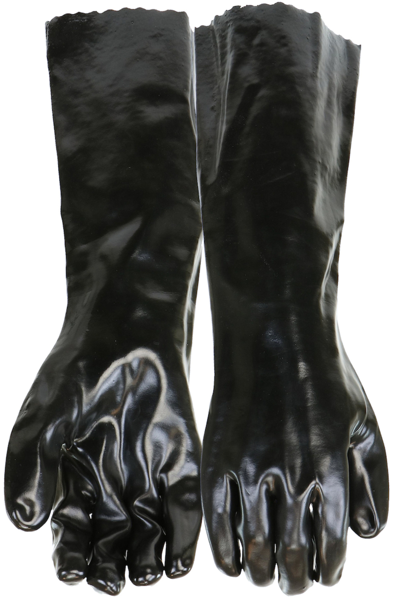 RADNOR Size Large, 18" smooth grip PVC glove. PVC exterior resists oil, grease, acids and solvents, and also provides moderate abrasion resistance.