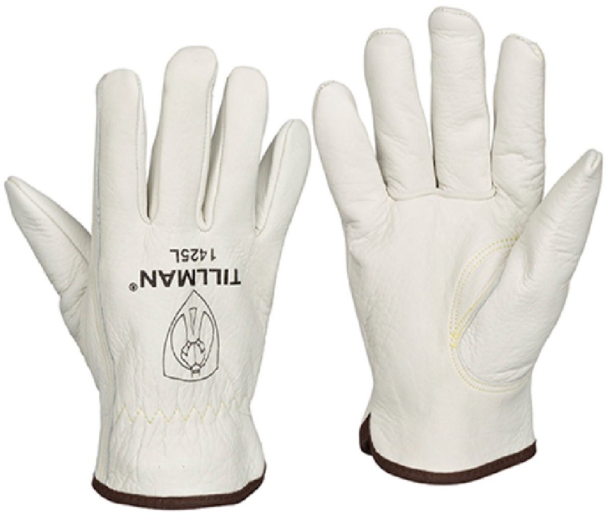The TillmanĀ® 1425 Series drivers gloves feature premium, pearl white top grain cowhide leather for maximum durability. The glove features a fleece lining for increased warmth. A shirred wrist helps the glove stay in place and keep cold debris out. The forefinger is double stitched which provides extra strength and durability and a gunn cut with a keystone thumb allows for easy movement and greater dexterity. Color-coded hemmed cuff for easy size identification. Size Medium.