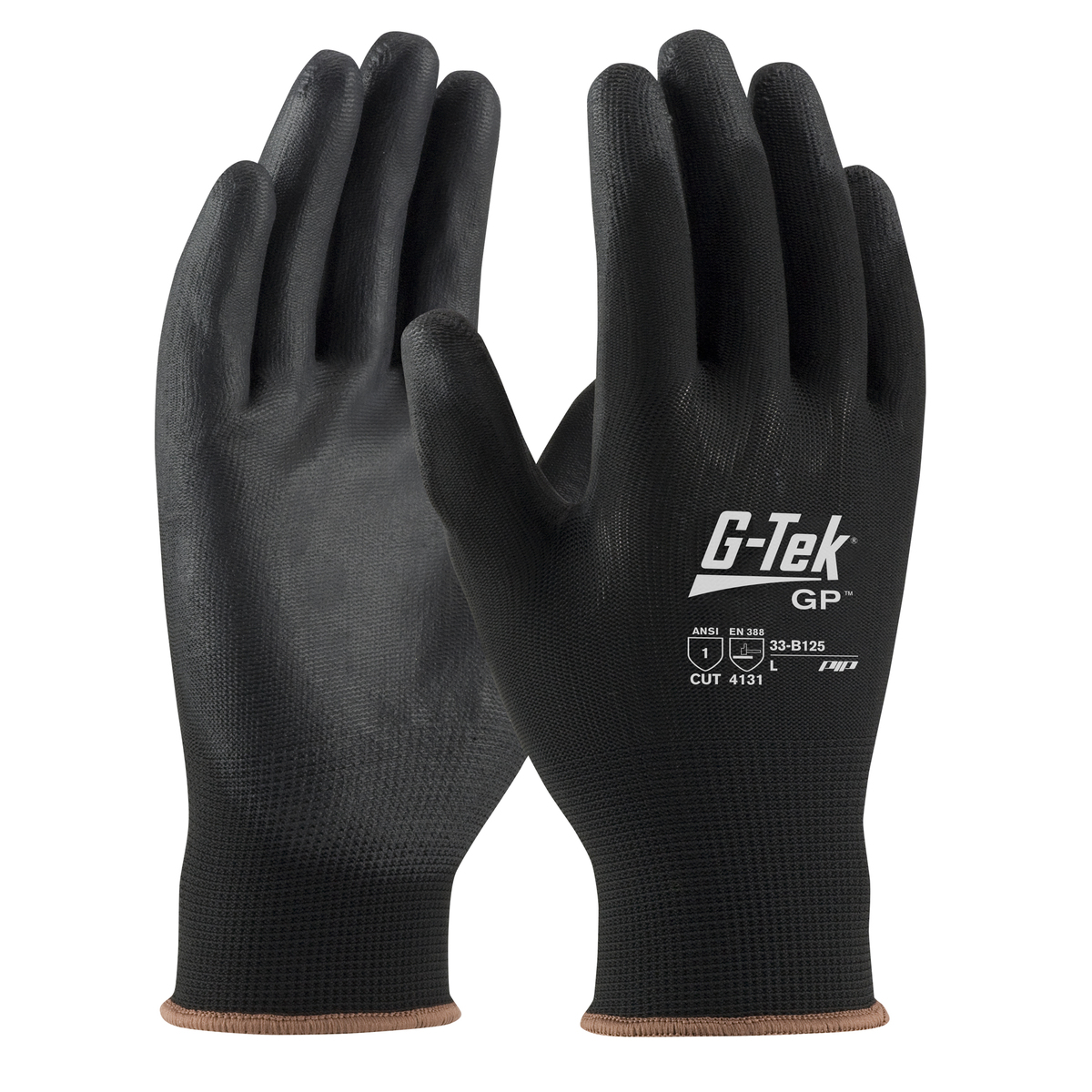 Protective Industrial Products Medium G-Tek® 13 Gauge Black Polyurethane Palm And Finger Coated Work Gloves With Black Nylon Liner And Knit Wrist