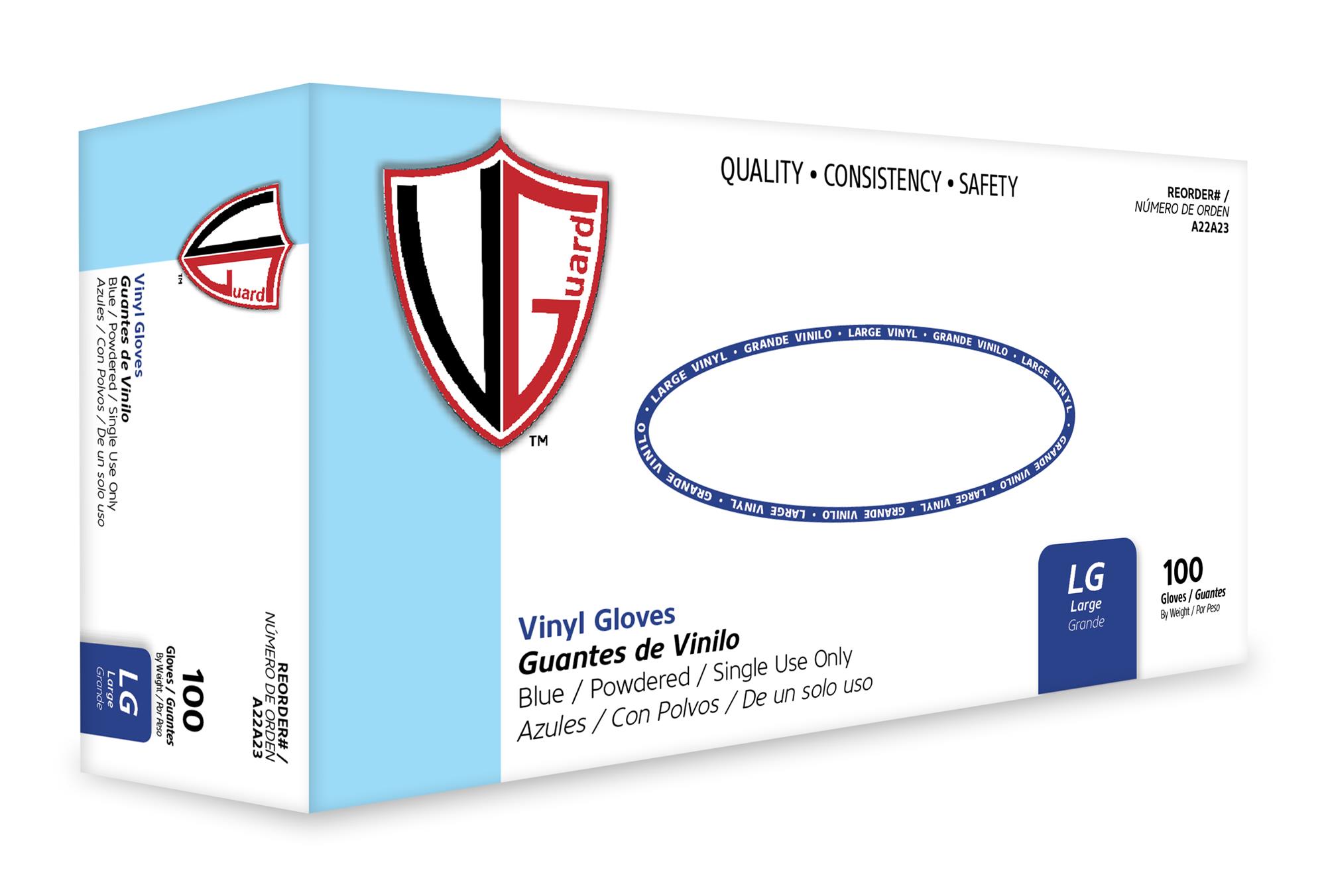 VGuard� 3 mil Blue Vinyl Industrial Powdered Glove 100 gloves box / 10 boxes case