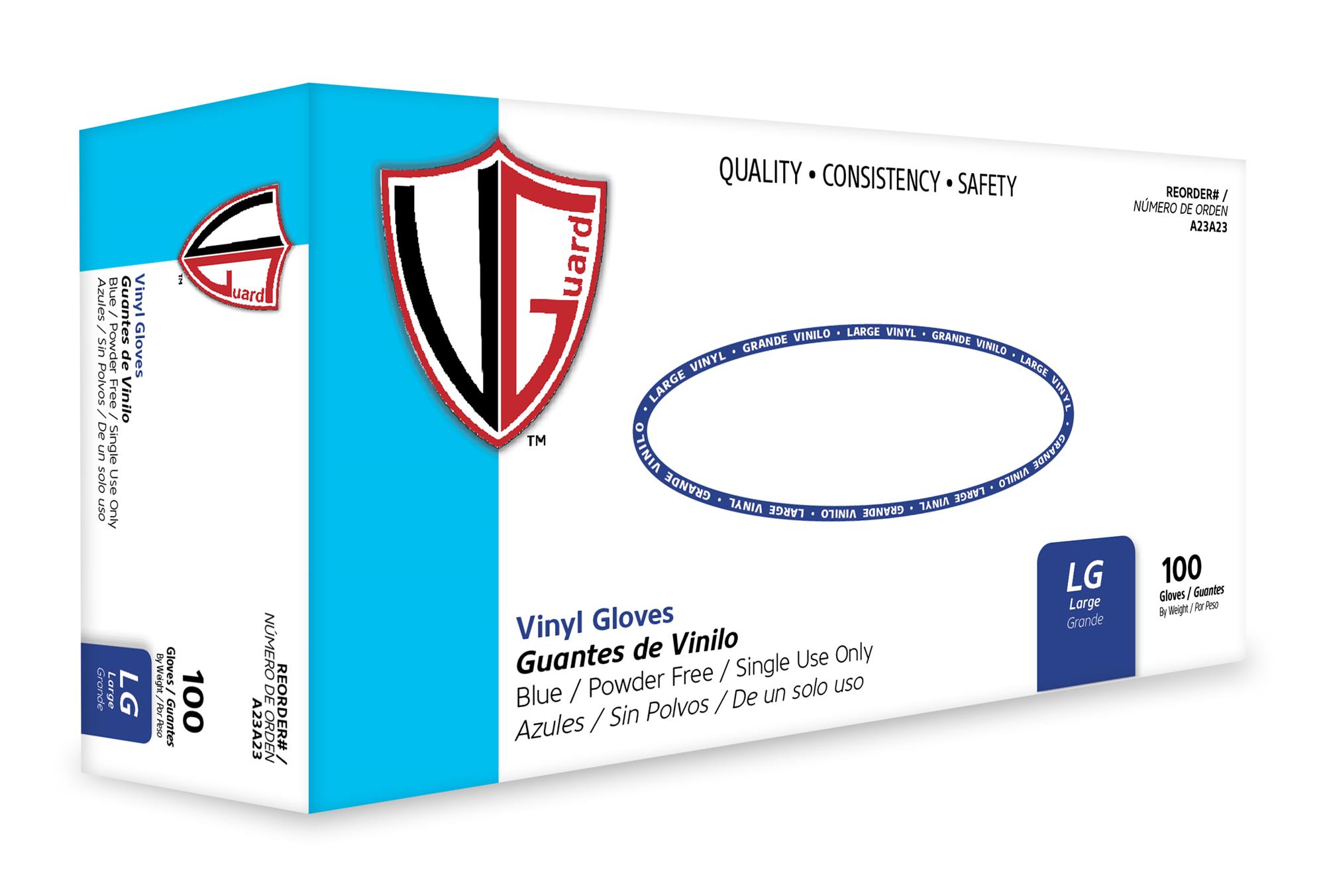 VGuard� A23A2 3 mil Blue Vinyl Industrial Glove 100 gloves box / 10 boxes case