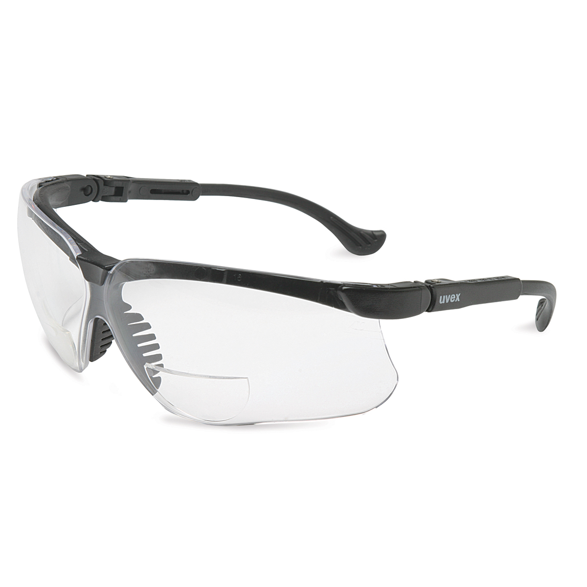 Honeywell Uvex Genesis® Reading Magnifiers 2. 0 Diopter Safety Glasses featuring black frame offer magnification of +2. 0 diopter for ne detail work, close-up inspection and reading the smaller print. Glasses with clear Ultra-dura anti-scratch lens provide 99. 9% protection from ultraviolet radiation. Soft, flexible nasal fingers adjust to a variety of facial profiles to reduce slippage. Padded temple tips and cushioned brow bar diffuse and deflect impact energy while providing all day comfort to the workers. An adjustable temple length and ratcheting lens inclination provides a customized fit.